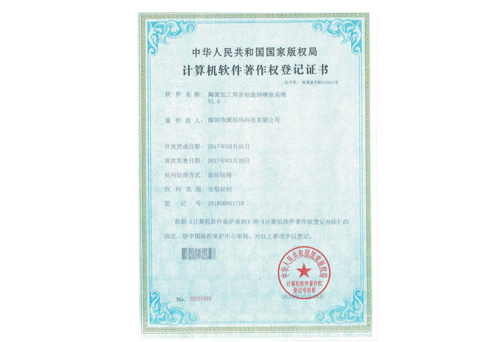 陶瓷內(nèi)徑自動(dòng)化加工控制軟件證書